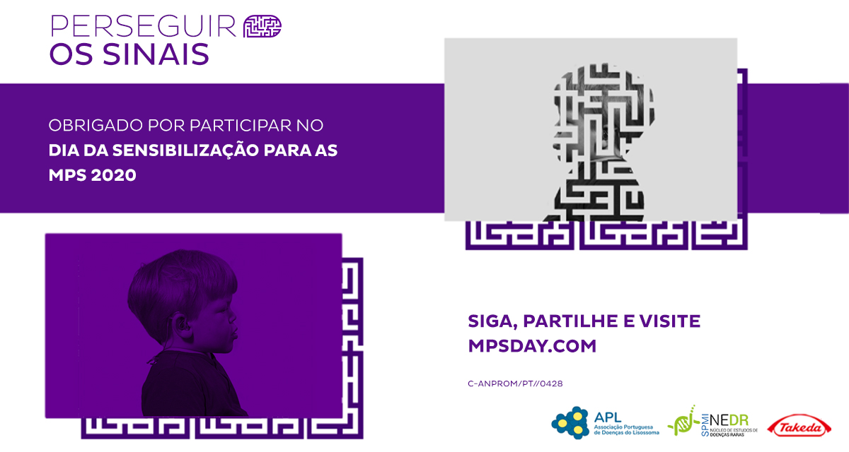 Obrigado por ajudar a aumentar a sensibilização para as MPS. Ao visitar o site MPSDay.com, ajudou pais e médicos a #Perseguirossinais de MPS. A MPS II, também conhecida como Síndrome de Hunter, é uma doença única, que afeta sobretudo rapazes. Para saber mais sobre os sinais e sintomas da Síndrome de Hunter, visite huntersyndrome.info e oiça o testemunho das famílias que vivem com esta doença.